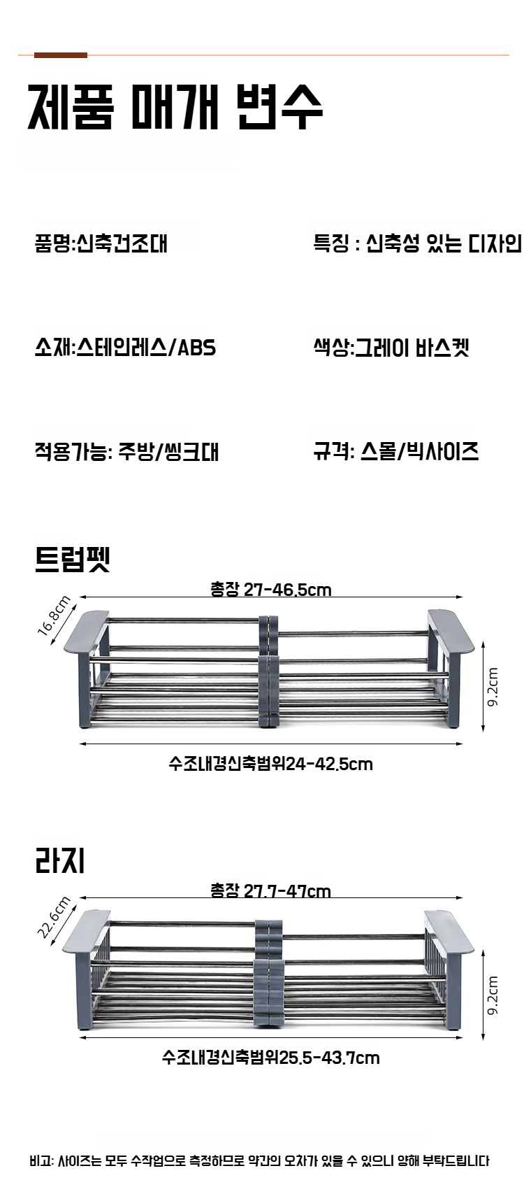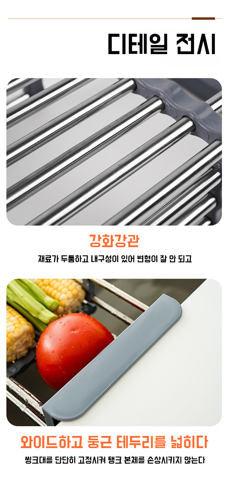 주방 스텐 씽크대 두꺼운 물빠짐 바구니 신축성 빠른 그릇 수납 선반 싱크대 선반
